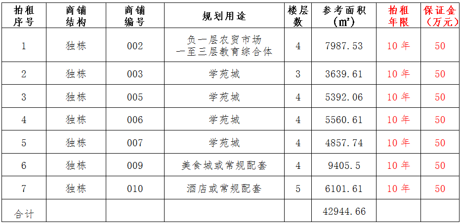 (一)拍租位于鎮(zhèn)雄縣南臺(tái)街道呢嚕坪安置點(diǎn)7棟獨(dú)立商鋪使用權(quán)。以棟為單位拍租。詳見下表: