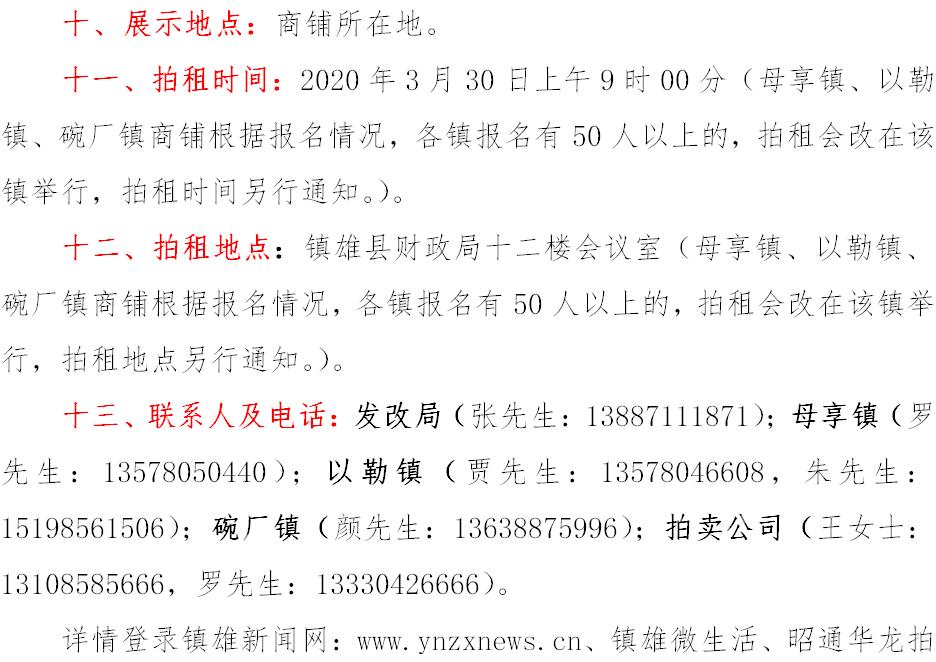 經(jīng)鎮(zhèn)雄縣人民政府批準(zhǔn),受相關(guān)部門(政府)委托,公開拍租位于鎮(zhèn)雄縣易地扶貧搬遷工程呢嚕坪安置點(diǎn)7棟獨(dú)立商鋪使用權(quán)、高山大地安置點(diǎn)27間(棟)商鋪使用權(quán)、魯家院子安置點(diǎn)24間(棟)商鋪使用權(quán)、母享安置點(diǎn)146間商鋪使用權(quán)、以勒物流城安置點(diǎn)67間(棟)商鋪使用權(quán)、碗廠安置點(diǎn)114間商鋪使用權(quán)。相關(guān)事項(xiàng)如下: